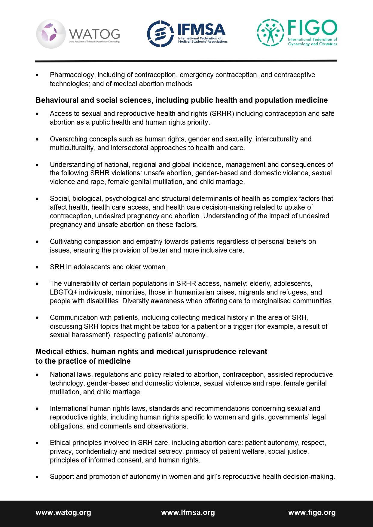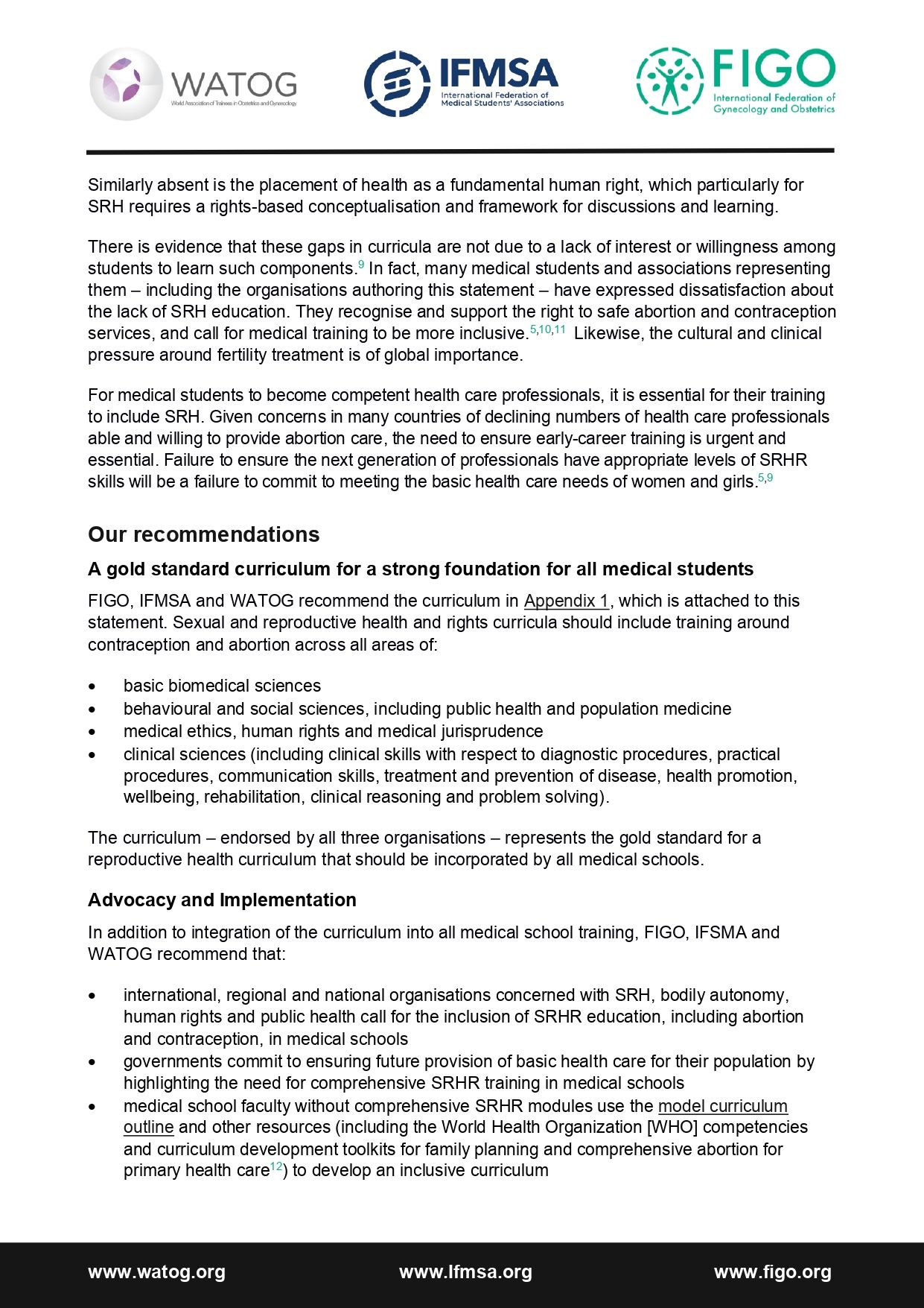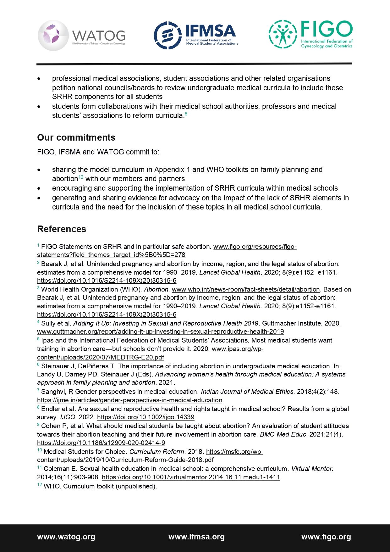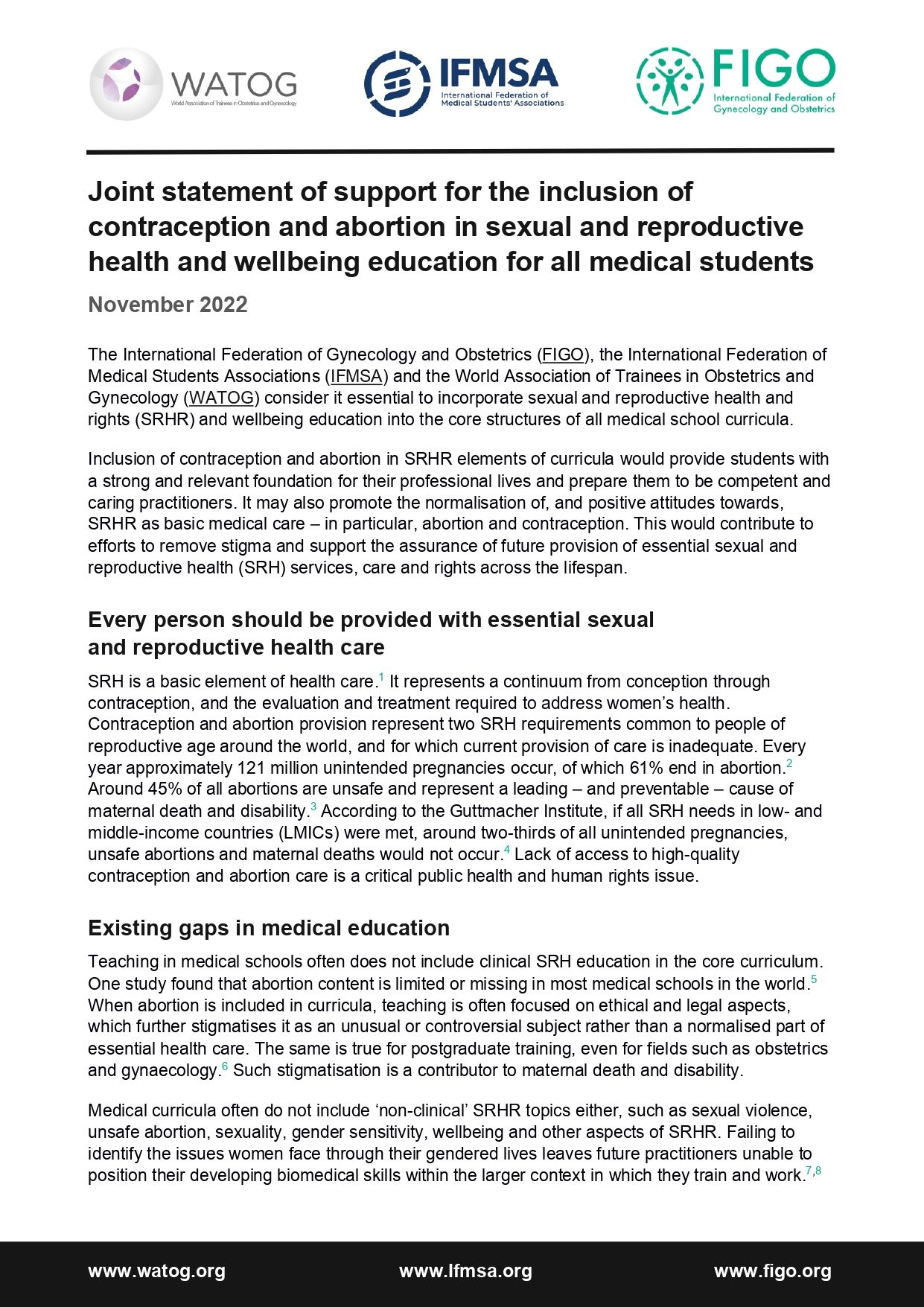 Joint statement of support for the inclusion of contraception and abortion in sexual and reproductive health and wellbeing education for all medical students